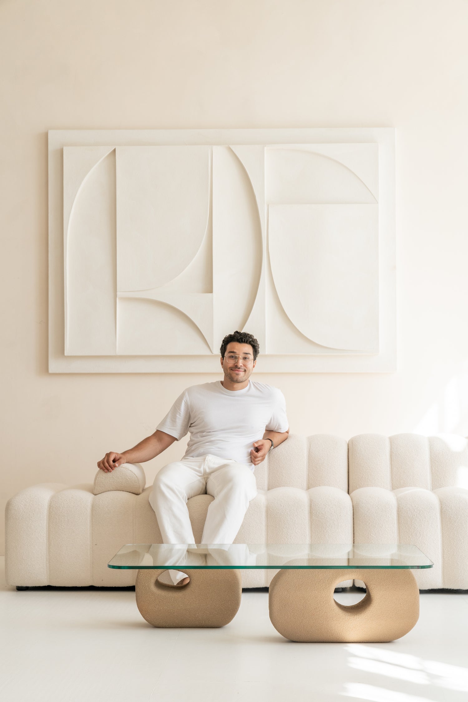 Sur l'image : Naïm Frih, fondateur de Dune ateliers et la table basse "Le Rectangle"